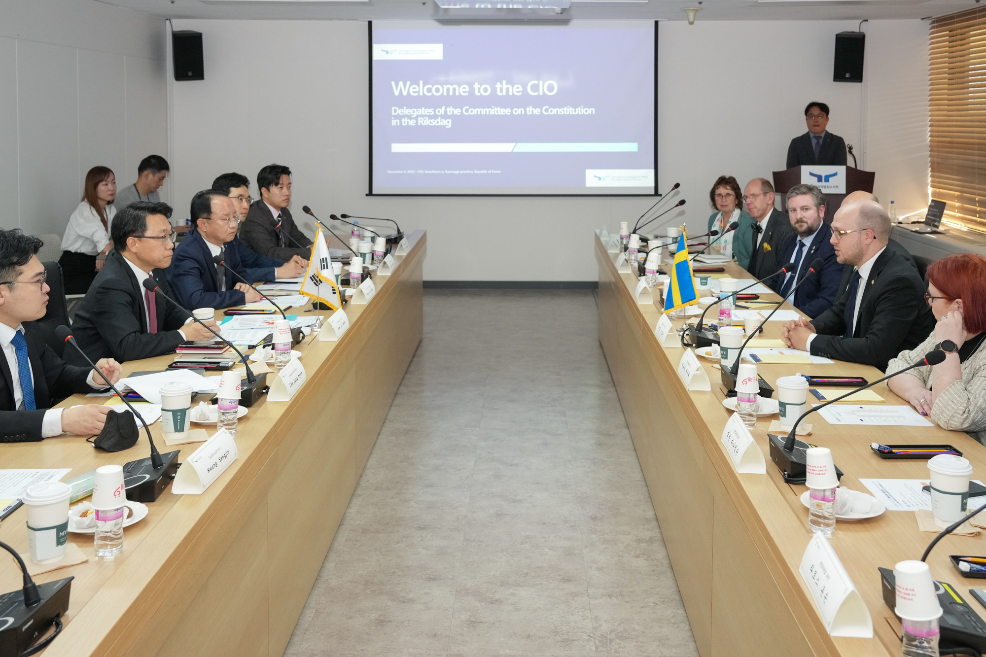 The Committee on the Constitution in the Riksdag 'Erik Ottosson(Deputy Chair of the Committee)' and 11 delegates and Ambassador 'Daniel Wolven' visited the CIO on November 2.